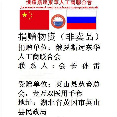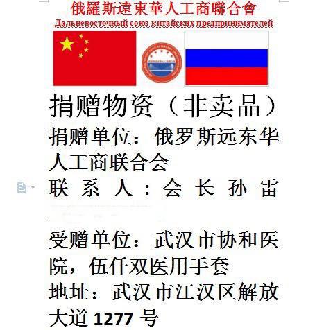 致公党大连市西岗区基层委员会党员、俄罗斯远东华人工商联合会会长孙雷在得知武汉发生新冠肺炎疫情后,主动和国内有关部门联系,希望能为湖北抗击疫情出一份力。他第一时间在俄罗斯组织动员商会成员捐款捐物,经过他的倡议号召,会员们纷纷踊跃捐款。同时孙雷与俄罗斯各个医疗物资企业积极联系。在了解到俄罗斯市场上的口罩、护目镜、防护服等医疗物资都十分紧张后,他发动在俄的朋友们一起寻找,终于采购到6万双医用手套和1.3万个口罩,总价值人民币10万多元。