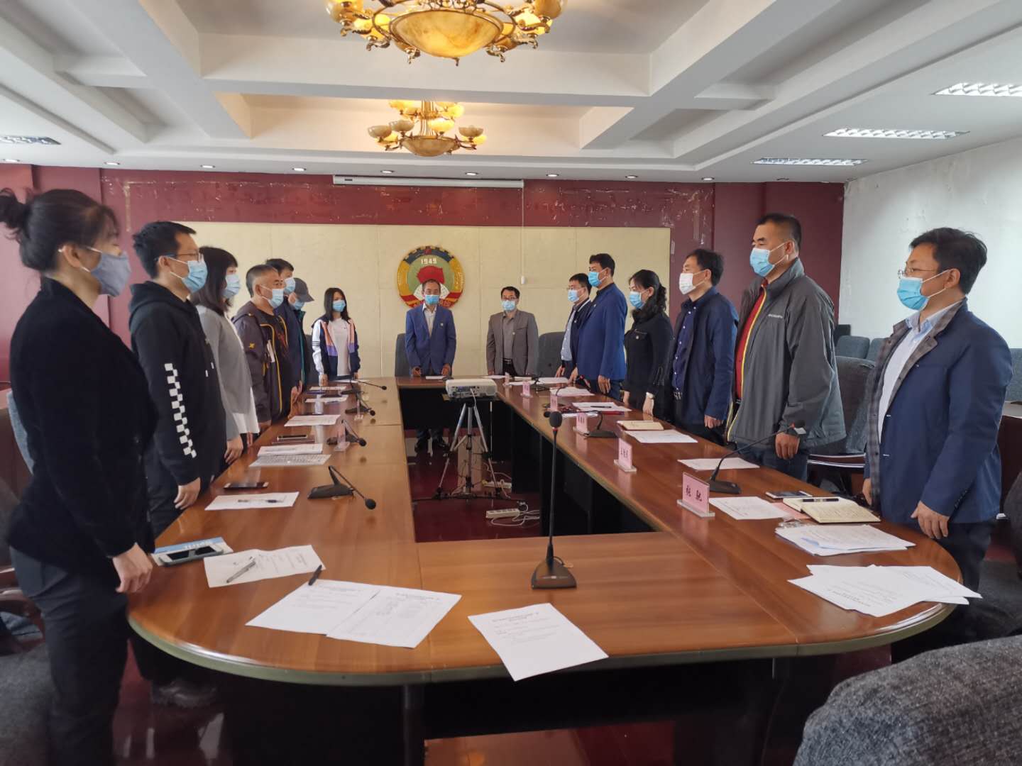 14时,刘天正宣布致公党市委教育支部第二次党员大会开会。会场响起雄壮的国歌,与会人员全体起立、共唱国歌。