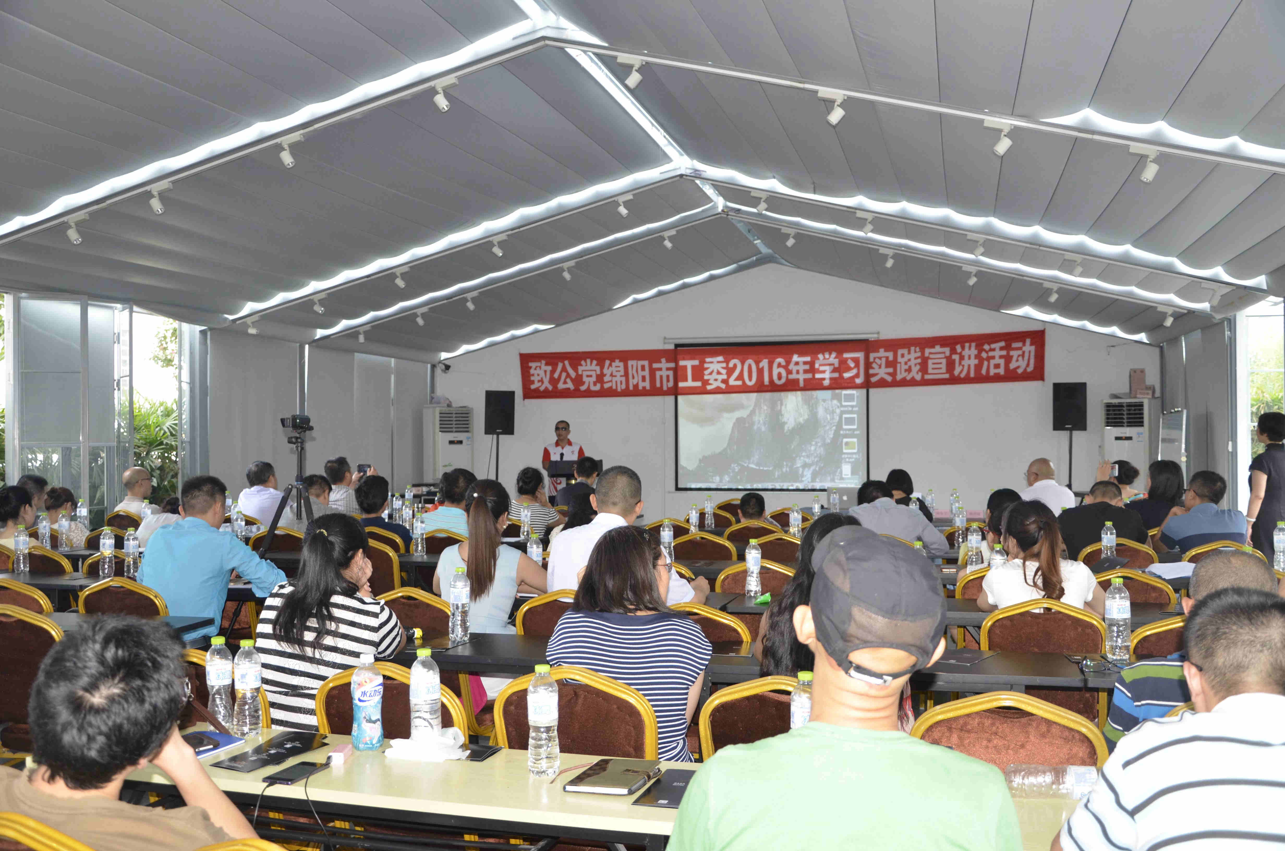 8月26日下午,致公党绵阳市工委举行坚持和发展中国特色社会主义学习实践主题宣讲活动,致公党绵阳市工委主委田荣华、绵阳市涪城区区委统战部副部长王胜、游仙区区委统战部原副部长王久才出席活动,活动由秘书长夏愉主持。