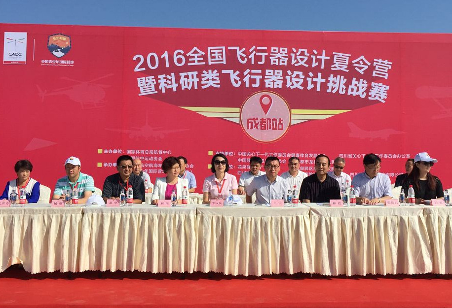 9月10日, 2016年全国飞行器设计夏令营暨科研类飞行器设计挑战赛在成都洛带华丽开幕。本届赛事由中国致公党四川省委员会、成都市龙泉驿区人民政府等支持,国家体育总局航管中心、中国航空运动协会主办,四川省航空航海车辆模型运动协会、中国青少年国际营地(龙泉基地)承办。致公党省委办公室主任杨成参加了开幕式。