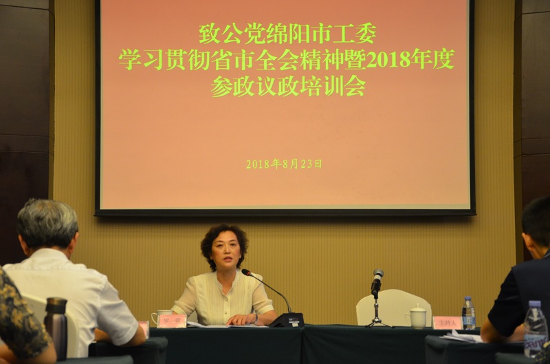 8月23日下午,致公党绵阳市工委召开学习贯彻省市全会精神暨2018年度参政议政培训会,学习贯彻中共四川省委十一届三次全会、中共绵阳市委七届五次全会精神,同时对党员进行参政议政培训。致公党四川省委副主委、成都市政协副主席、致公党成都市委主委罗霞出席会议,绵阳市政协副主席、致公党绵阳市工委主委田荣华主持会议,致公党四川省委常委、致公党四川省委监督委员会副主任、致公党成都市委驻会副主委兼秘书长吕海波,致公党绵阳市工委副主委杨邦琼、陈刚,秘书长夏愉参加会议。