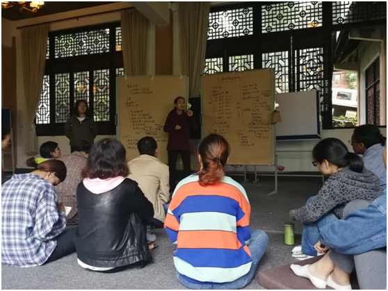 在工作组培训会议上,杨成围绕法王寺村项目由来、已完成项目简介、法王寺旅游项目现状、旅游项目困境及思考四个方面进行了介绍。他希望法王寺村旅游发展项目能够得到成都蜀光社区发展能力建设中心的支持和帮助,利用田野调查法、参与式工作法等深入了解村民需求,充分听取群众意见,引导村民积极参与项目规划,注重各方资源整合,促进法王寺村发展与村民发展相结合,法王寺村旅游发展规划与政府旅游规划相契合,法王寺村旅游发展与乡村振兴相融合。成都蜀光社区发展能力建设中心负责人表示,他们将分成工作小组深入到法王寺六个社,围绕旅游发展现状、资源、问题、需求等方面进行深度调研,结合实际提出两至三套建议方案供参考,再组织村民进行讨论选出最合适的方案推进实施。