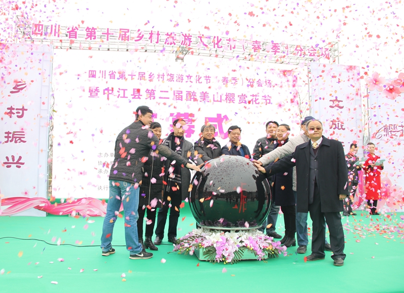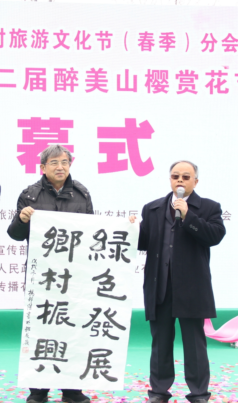 1月25日,四川省第十届乡村文化旅游节(春季)分会场暨中江第二届醉美山樱花节在四川省德阳市中江县樱花岭开幕。致公党中央原副主席、四川致公书画院院长杨邦杰,省政协副秘书长、致公党四川省委专职副主委肖剑书,中国致公画院副院长、四川致公书画院副院长程峰应邀出席开幕式,并为樱花岭授牌设立“四川致公书画院采风创作基地”。