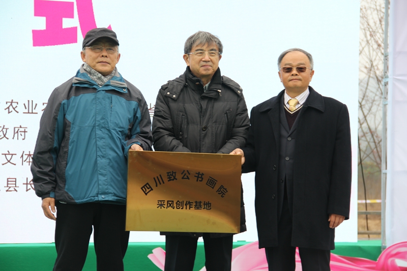 杨邦杰(中)授牌樱花岭为四川致公书画院采风创作基地