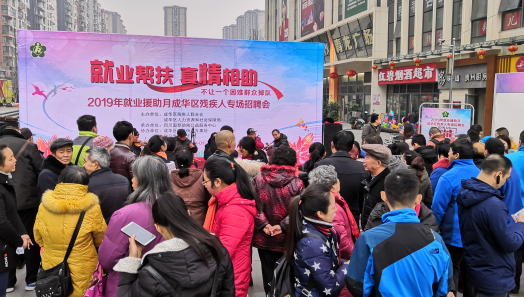 按照成都市人社局、市残联的统一部署安排,1月24日,由成华区残联、区人社局主办,圆梦公益承办,青龙街道和致公党成华支部协办的2019年就业援助月成华区残疾人就业招聘会--“就业帮扶、真情相助、不让一个困难群众掉队”在青龙街道青龙广场举行。