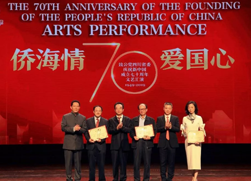 2019年9月28日,致公党四川省委在“侨海情 爱国心”庆祝新中国成立七十周年文艺汇演晚会上对践行“四新”“三好”总体要求(“新时代多党合作要有新气象、思想共识要有新提高、履职尽责要有新作为、参政党要有新面貌”和“做中国共产党的好参谋、好帮手、好同事”)过程中表现突出的集体和个人进行表彰。