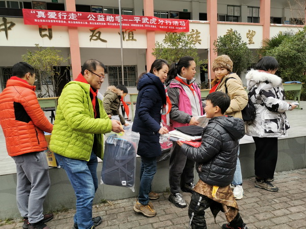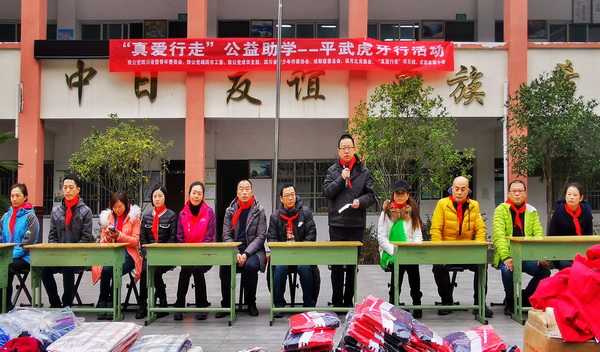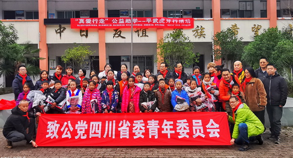 2019年12月13日,由致公党四川省委青年委员会、致公党绵阳市工委、成都慈善总会柒月之光基金、“真爱行走”公益助学项目组等单位或机构联合举办的“真爱行走”公益助学活动在平武县虎牙藏族乡中心小学举行。平武县统战部副部长何晓莉应邀出席捐赠仪式,致公党四川省委青年委员会、思想宣传与理论研究委员会、农业委员会的部分党员志愿者,致公党绵阳市工委的党员志愿者以及部分社会爱心人士共计25人参加活动。