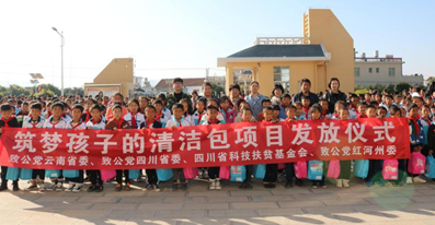 12月18日,致公党四川省委会、致公党云南省委会,四川省科技扶贫基金会联合主办的“致公筑梦孩子的清洁包”发放仪式在红河哈尼族彝族自治州大庄中心校正式举行。致公党四川省委会社服委主任、致公党四川省委直属工委副主委周启杨,致公党四川省委社服委副主任,四川省科技扶贫基金会常务副秘书长李嘉辉,致公党红河州专职副主委何晰等出席本次捐赠仪式。