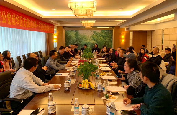 2020年1月17日下午,致公党成都市成华区支部2020年一月支部会议暨新春座谈会在五粮液酒店五楼会议室举行。致公党成都市委宣传处副处长覃伟应邀出席。成华区支部主委王学俊及支部党员、入党积极分子40多人参加会议。会议由支部组织委员陈建萍主持。