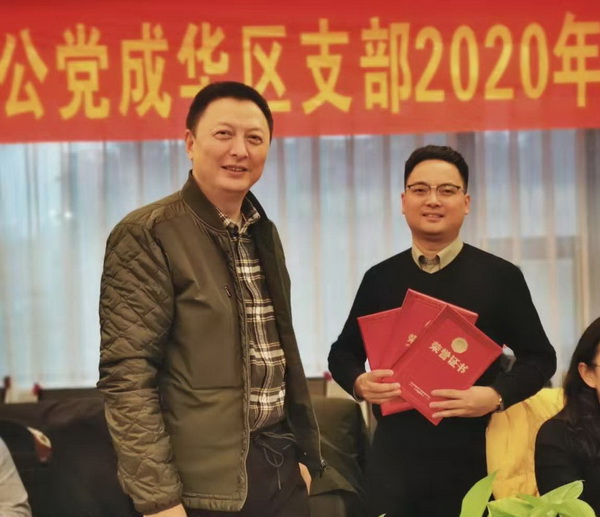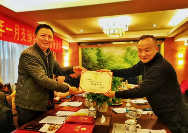 会上,王学俊带领与会人员认真学习了习近平总书记新年贺词及习近平总书记同党外人士共迎新春重要讲话精神,传达学习了致公党四川省委会七届九次全委会议和“不忘合作初心,继续携手前进”主题教育活动总结会精神,传达学习了致公党成都市委会七届七次全委(扩大)会议暨“不忘合作初心,继续携手前进”主题教育活动总结会精神,通报了“致美四川”公益活动2019年工作总结会议的有关情况。会议还总结了成华支部2019年工作开展情况,通报了支部及成员取得的成绩,支部先后被致公党四川省委会评为“不忘合作初心,继续携手前进”主题教育活动先进集体、“参政议政工作”先进集体,被致公党成都市委会评为“不忘合作初心,继续携手前进”主题教育活动先进集体、“思想宣传工作”先进集体、“对外联络工作”先进集体”等。会议展示了先进集体的荣誉证书或奖牌,并向2019年表现突出的“先进个人”颁发了荣誉证书。