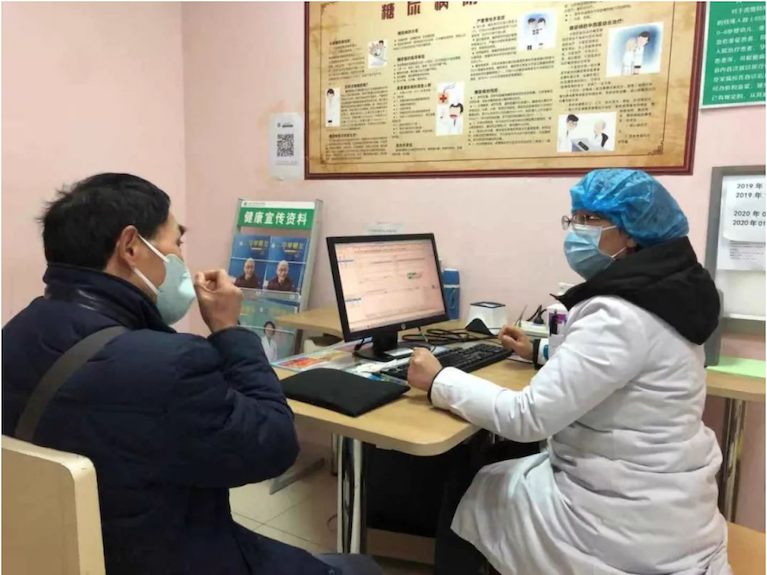 牛彩琴正在为患者讲解防疫知识
