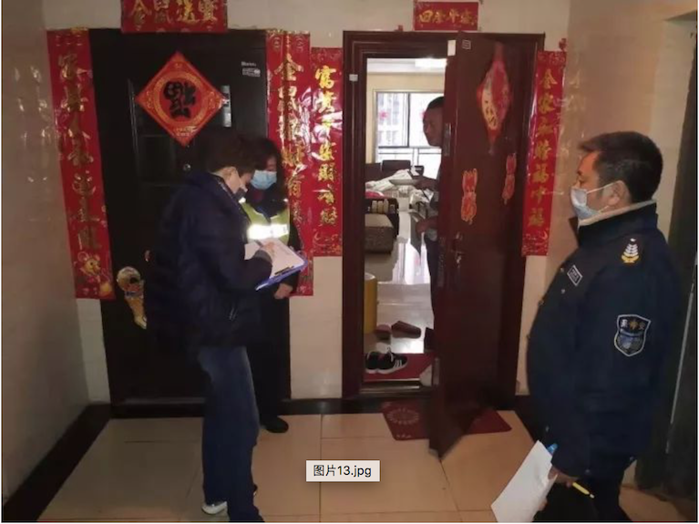 汪艳玲(左一)入户调查走访
