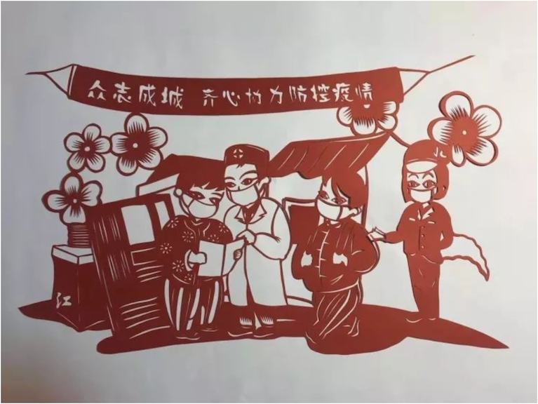杜华江创作的剪纸作品《防控疫情》