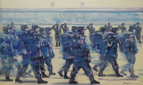 钟纲:《逆行者再出征》 布面油画,100×60cm