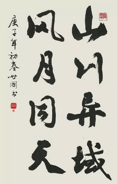 释文:1、山川异域,风月同天。