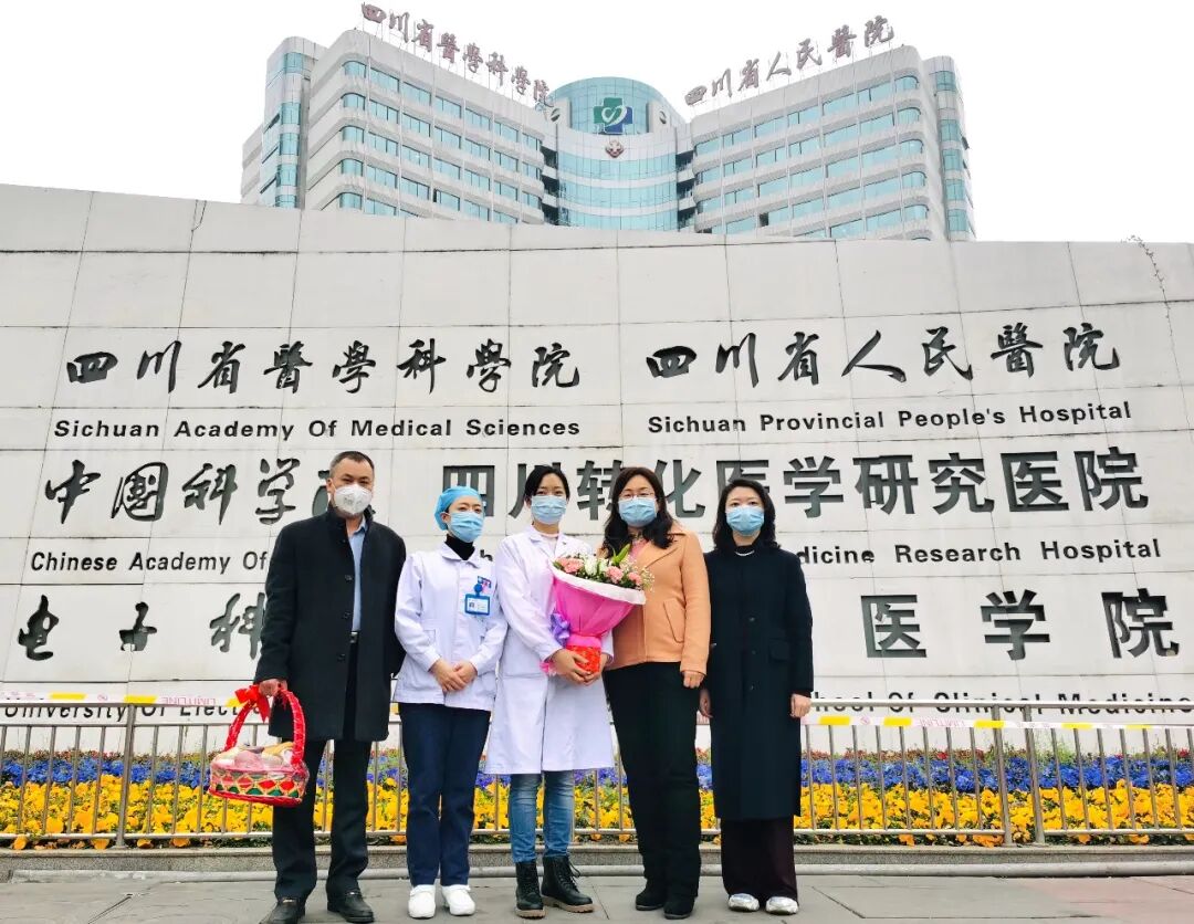 2月27日,按省委会主委杨兴平、专职副主委肖剑书指示,由省委会秘书长杨志萍带队,宣传处副处长敬筠等共赴四川省人民医院看望了我的家属、省医院药房医生刘一(中)和在岗医生党员王珏岚(左二)