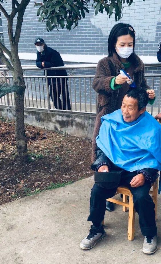 罗尹为老人理发