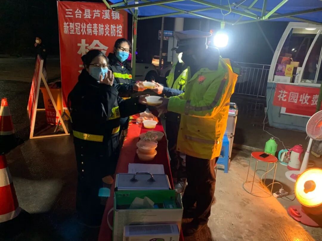 罗钦和收费站员工一起吃年夜饭