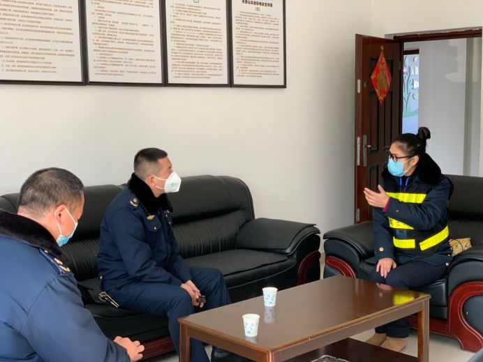 罗钦与来站工作人员交流