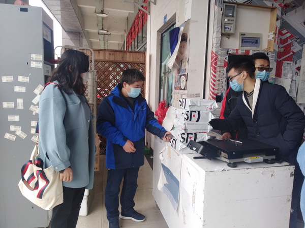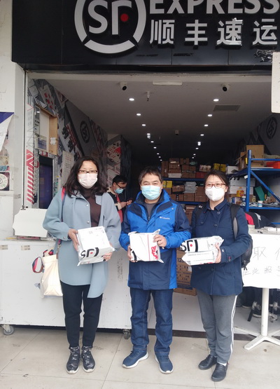 致公党员胡君平(左1)等爱心人士在邮寄抗疫物资-爱心口罩