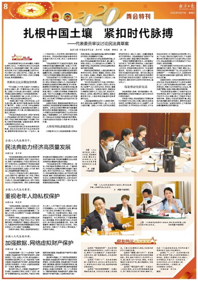 (节选并转载自2020-05-27《经济日报·中国经济网》,原文标题“扎根中国土壤 紧扣时代脉搏——代表委员审议讨论民法典草案”,记者李万祥 佘惠敏 韩秉志 姚进,本稿的标题和文字有改动并增加了配图,致成宣综合编辑。)
