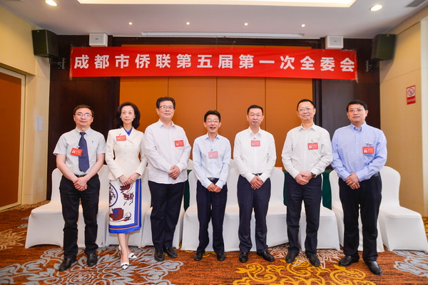 天府新区商会会长王麒(左2)当选为成都市侨联第五届委员会副主席