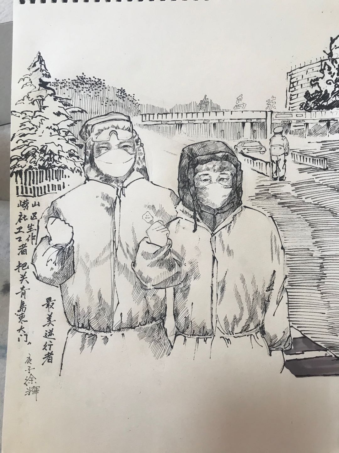 徐辉:最美逆行者(钢笔画)