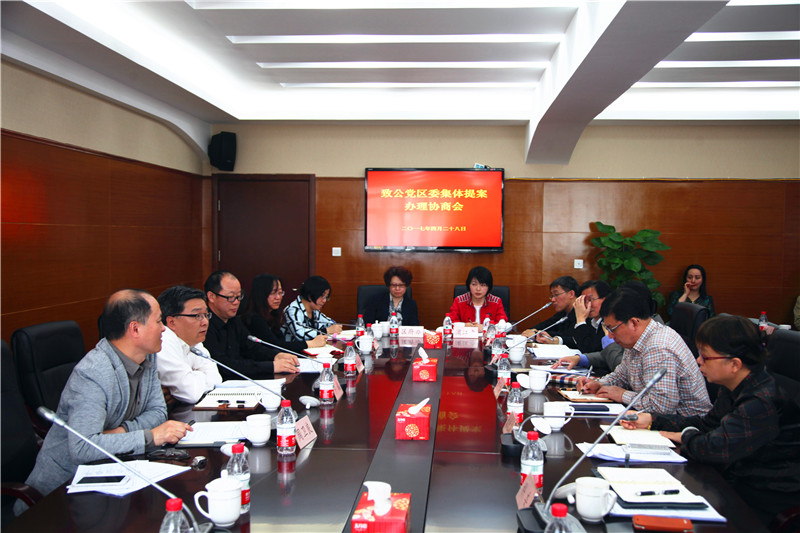 在2017年上海杨浦区政协十四届一次会议上,致公党杨浦区委提交了5件集体提案,其中“关于推进杨浦区校深度合作,提升国家双创基地建设的建议”被列为区政协重点提案。为进一步增进提案者与承办单位的沟通与交流,促进提案的办理落实,区政协于4月28日上午举办致公党区委集体提案办理协商会,区政协秘书长严巍,区政协提案委员会主任周卫良,致公党杨浦区委主委李麟学、副主委黄惠敏等出席会议。