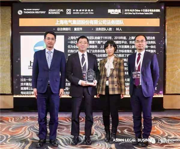 2019年12月20日,上海电气法务团队再次入选 “2019 ALB 中国十五佳公司法务团队”,与互联网、金融及投资和高科技巨头公司同获殊荣。