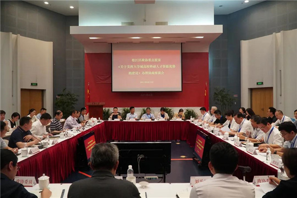 6月15日下午,松江区政协组织部分委员对区政协两个重点提案之一——致公党松江区总支重点提案《关于发挥大学城高校科研人才资源优势的建议》办理情况进行视察座谈。松江区政协主席刘其龙、副区长刘福升、秘书长张惠军、专委办主任朱雷娟,专委会主任黄桂弟、俞根龙、侯昌青、方闯烈、周留昌、赵文健、周文辉、张春及部分政协委员参加视察。