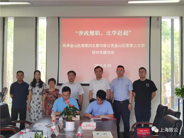 6月25日上午,致公党金山区委第三支部与民革金山区委第四支部举行结对共建签约仪式。致公党上海市委委员、金山区委主委刘新宇,民革金山区委主委裴雄卿出席会议。