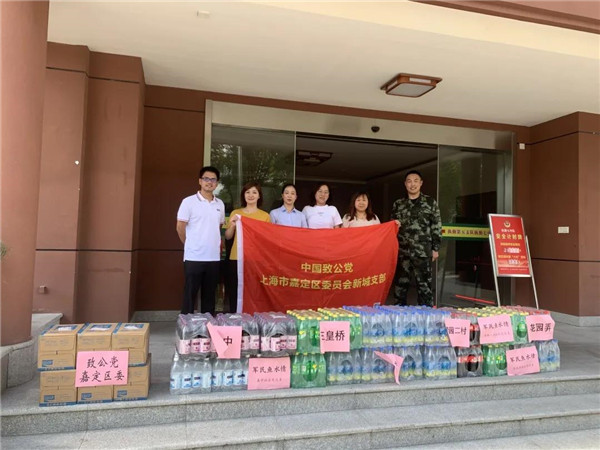 下午2时,新城支部党员在主委程瑛的带领下,冒着高温前往武警上海总队五支队二大队驻地,为武警官兵送去了消暑慰问用品。程瑛感谢部队官兵在维护嘉定社会稳定、促进经济发展中做出的突出贡献,向他们致以诚挚的节日问候。