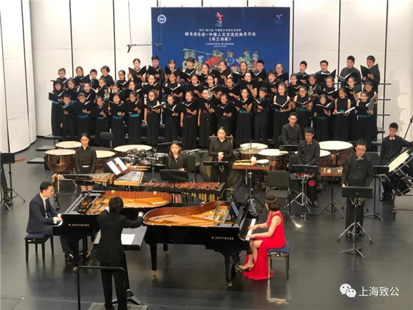 音乐会由《红旗颂》拉开序幕。上半场,中炜打击乐团运用打击乐不同风格演奏了《风石组曲》《一个美国人在巴黎》等经典曲目。孙中炜原创的乐曲《韵》,采用了很多民间旋律融合西方复合节奏型的律动,带来似曾相识却又耳目一新的感觉。下半场,由悦尔童声合唱团、华&薇钢琴二重奏、指挥宋诗侬共同带来全本改编的双钢琴、打击乐及童声合唱版《布兰诗歌》,全曲使用原文拉丁文演唱。