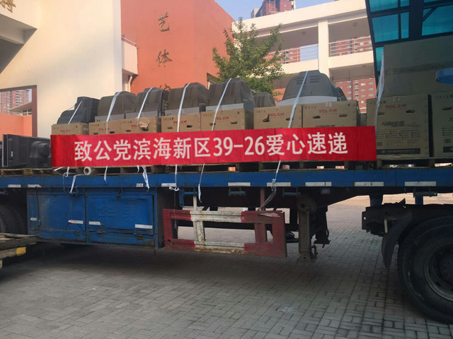 9月12日,区委会向全体党员发出倡议书,得到党员的积极响应,捐出二手电视机或购买新的电视机,石敬晖协调所在学校捐出闲置的电视机。为防止二手电视机出现不能正常使用问题,任杰、王镜丞、傅晨、李鑫、刘合龙对所有电视机进行了检查,主委卫红梅协调天津市士杰电池有限公司为捐赠的电视机免费包装运输。