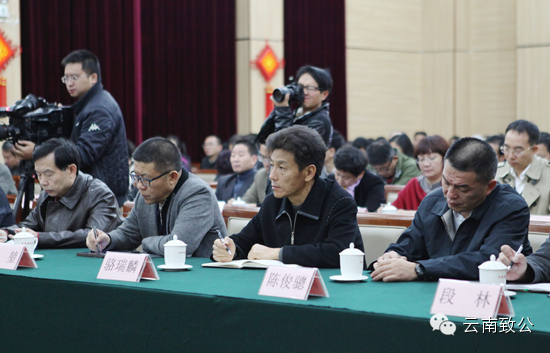 黄毅就中共云南省委九届九次全会主要内容进行了通报。希望各民主党派、工商联、无党派人士要立足自身职能、发挥各自优势,把全会精神学习领会好、贯彻落实好。一要通过辅导讲座、专题研讨、集中培训等多种方式进行学习,在全面学习领会全会精神的基础上,准确把握全会对统一战线提出的新任务、新要求。二要围绕全面推进依法治省的总体目标深入开展调研,及时向省委、省政府提出建设性、可操作性的意见和建议,进一步发挥在立法协商和民主监督中的作用,为全面推进依法治省献计出力。三要加强制度建设,运用法治方式不断推动协商民主制度建设,在法治化轨道上推进民族和睦、宗教和顺,建立健全促进非公有制经济健康发展的法律法规,努力形成涵盖统一战线工作各个领域、各个方面的制度体系。四要积极开展中国特色社会主义学习实践活动,团结带领广大统一战线成员进一步增强法治意识,弘扬法治精神,凝聚依法治省的强大合力,为开创法治云南建设新局面作出贡献。