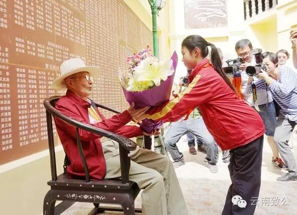 杨皕代表中共昆明市委向罗老敬送贺礼
