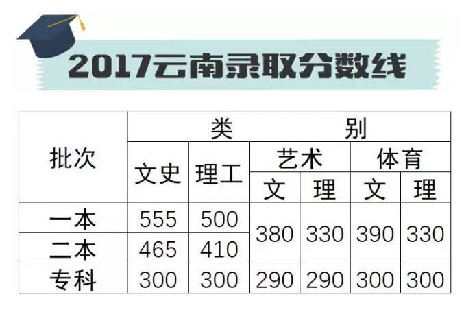 6月23日,云南省2017年普通高校招生考试录取控制分数线公布。