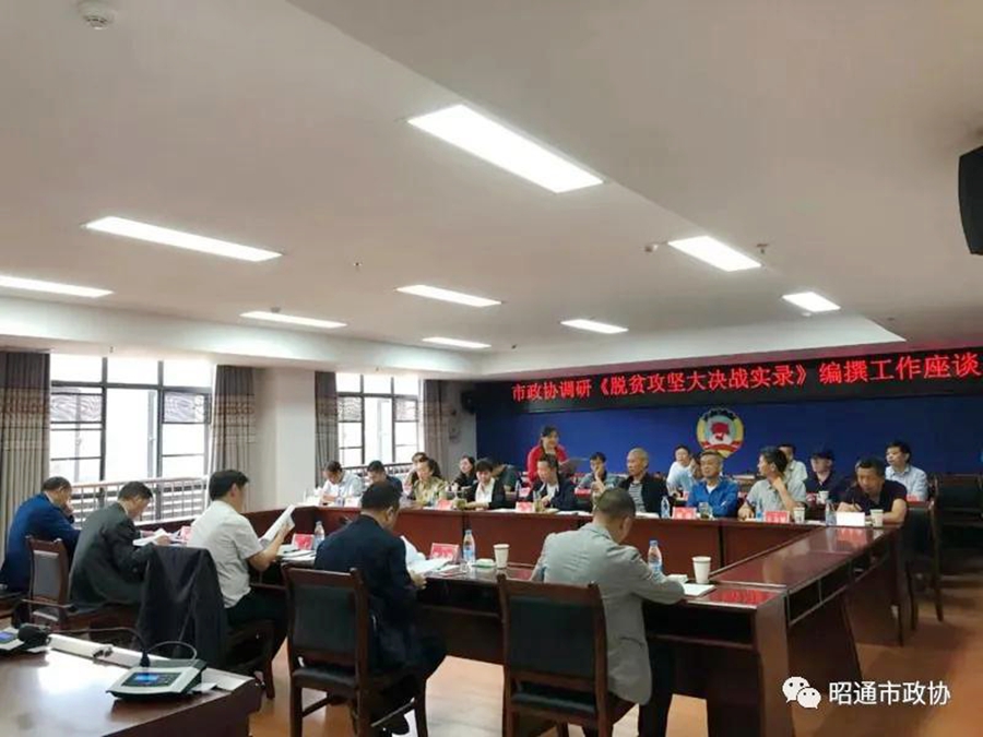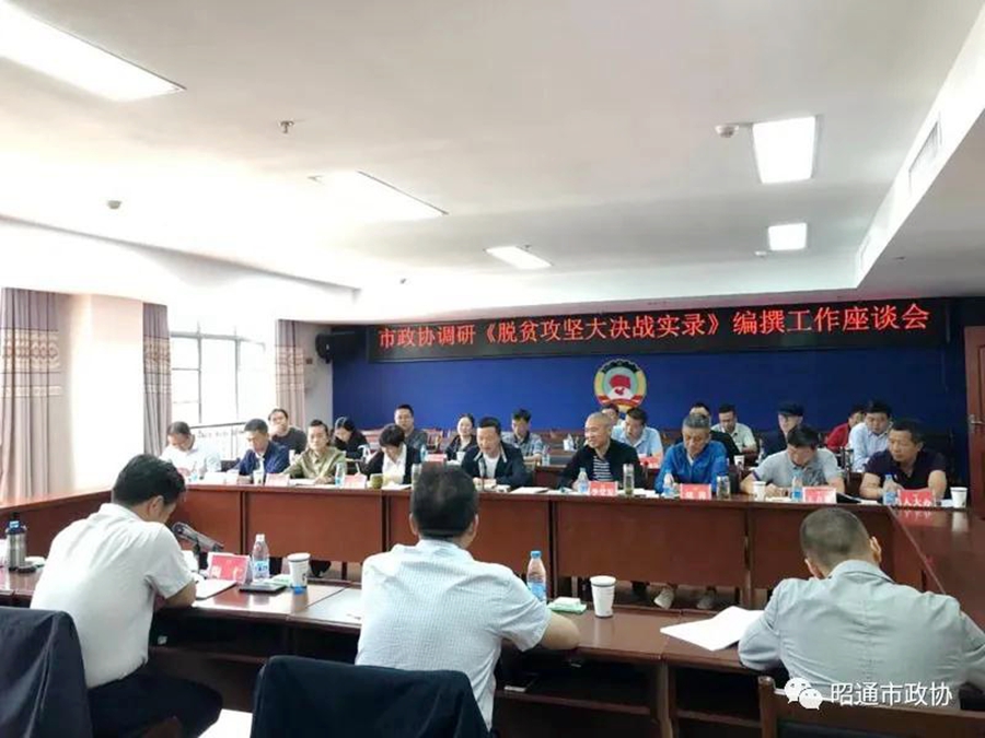 6月3日,为进一步推进《昭通市脱贫攻坚大决战实录》编撰工作,昭通市政协副主席、致公党昭通支部主委陶仁一行到彝良调研《脱贫攻坚大决战实录》编撰工作开展情况,并召开座谈会,会议由彝良县政协主席李堂发主持。