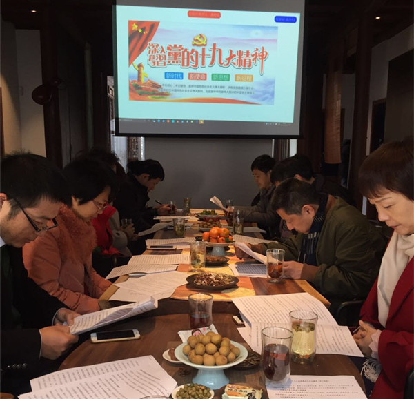 王呈禾首先就思想建设、组织发展、参政议政和社会服务等方面对支部2017年工作取得的进展作了简要介绍,他鼓励大家在看到成绩的同时也要正视存在的问题,希望全体支部成员能够再接再厉,立足本岗,积极履职,为支部的发展壮大添砖加瓦。随后,会议以党员带头诵读的形式组织大家认真学习了中共十九大精神和致公党十五大精神。围绕着“新时代、新使命、新思想、新征程”四个关键词,与会党员纷纷畅谈自己的想法和感受,现场气氛热烈。