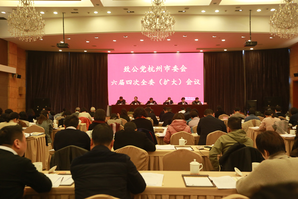 1月11日,致公党杭州市六届四次全体(扩大)会议在杭州召开。会议传达学习了习近平总书记在庆祝改革开放四十周年大会上的重要讲话精神、致公党中央十五届二次全会精神和中共杭州市委十二届六次全会精神,总结去年工作,谋划今年思路。杭州市副市长、市委会主委胡伟代表六届常委会作工作报告,中共杭州市委统战部副部长俞永明到会指导。市委委员、省、市人大代表、政协委员、基层组织和专委会负责人、老领导等近100人参加会议。