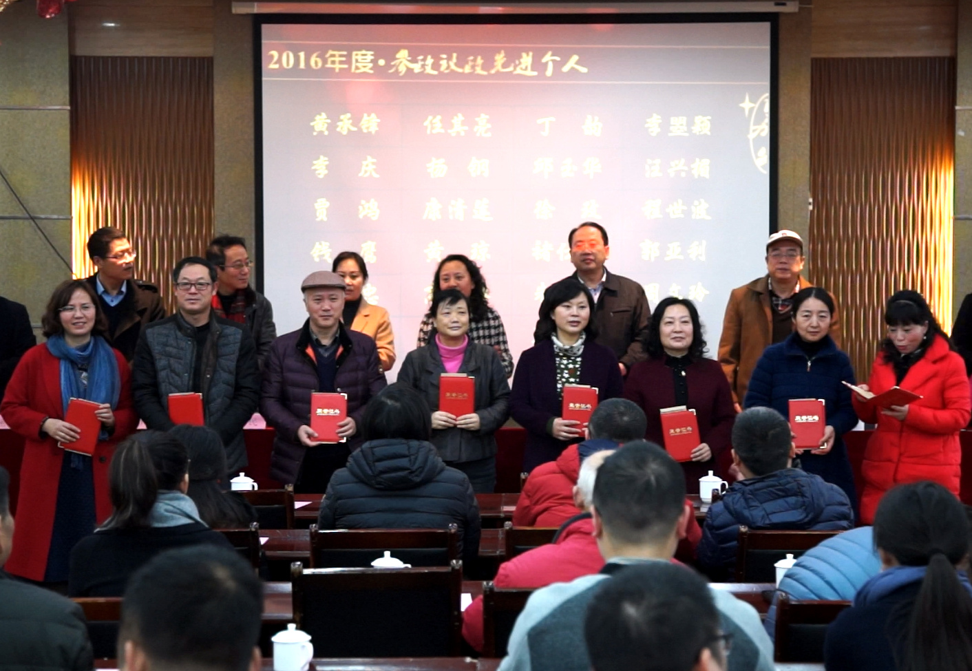 会议表彰了重庆交通大学支部、重庆工商大学支部两个先进集体,廖风华、熊进两位争光贡献党员,罗钢、钱华欣、孔祖龙等22名优秀党员,黄承锋、徐玫、钱鹰、高蕴嶙等22名参政议政工作先进个人,王光强、张清川、李向东、曹岭4名社会服务工作先进个人,王巧萍、曹语桐、许子渝、龚彬4名思想宣传工作先进个人,现场介绍了2016年新发展的潘琳、王茂、杨玺、肖飞、张涛、张清川、呙薇娇7名新党员。先进集体重庆交通大学支部主委廖风华作了支部建设的现场交流发言,赢得与会领导和党员们热烈的掌声。