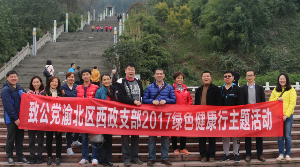 2017年3月4日,致公党重庆市渝北区西政支部在铁山坪森林公园登山步道开展2017绿色健康行主题活动。此次活动拉开了西政支部2017年主题活动的序幕,据悉,该支部今年还将开展法律服务、亲子交流、对接帮扶等多种形式的主题活动,将会进一步加强党员之间的沟通交流、增进友谊,同时扩大党派影响力。