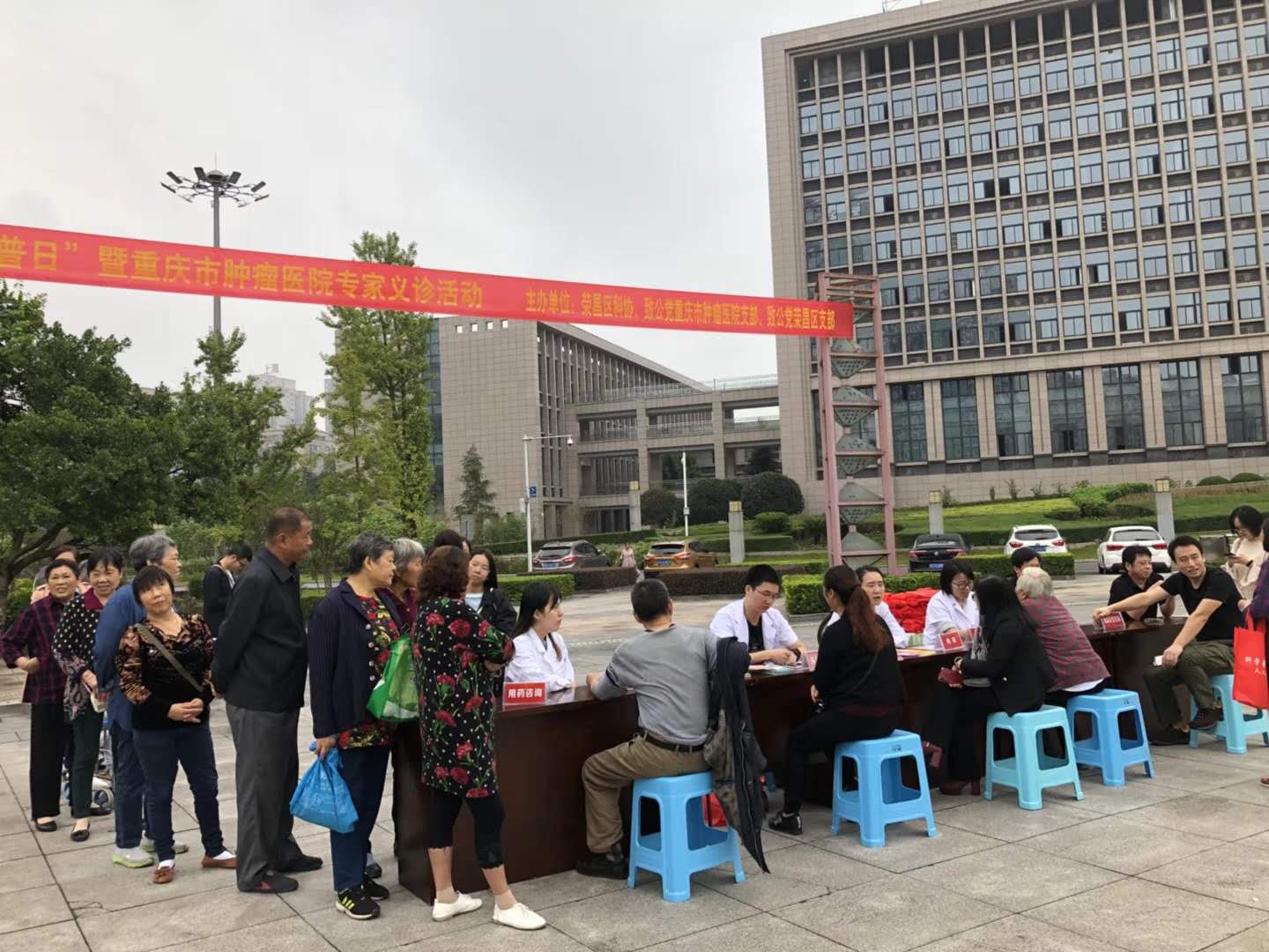 活动伊始,前来就诊的群众络绎不绝,场面火热而有序。致公党重庆市肿瘤医院支部派出了营养科,头颈外科,普内科,药剂科等五名专家,为群众量血压、测血糖,详细询问其身体状况,进行耐心细致的检查、分析病情、指导用药。专家们在现场,认真解答了群众们关于常见病、多发病的预防诊治及愈后疑难问题,并为有需要的患者指导了下一步的诊疗方向。