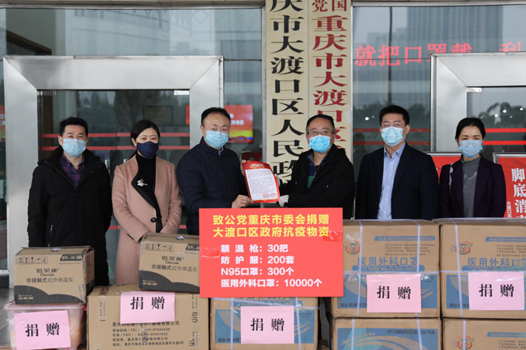 致公党重庆市社会发展和服务专委会副主任刘允,以致公党重庆市委会的名义,向大渡口区捐赠了总价值约10万元的抗疫物资,包括10000个医用外科口罩,300个N95口罩,200套防护服及30把额温枪。