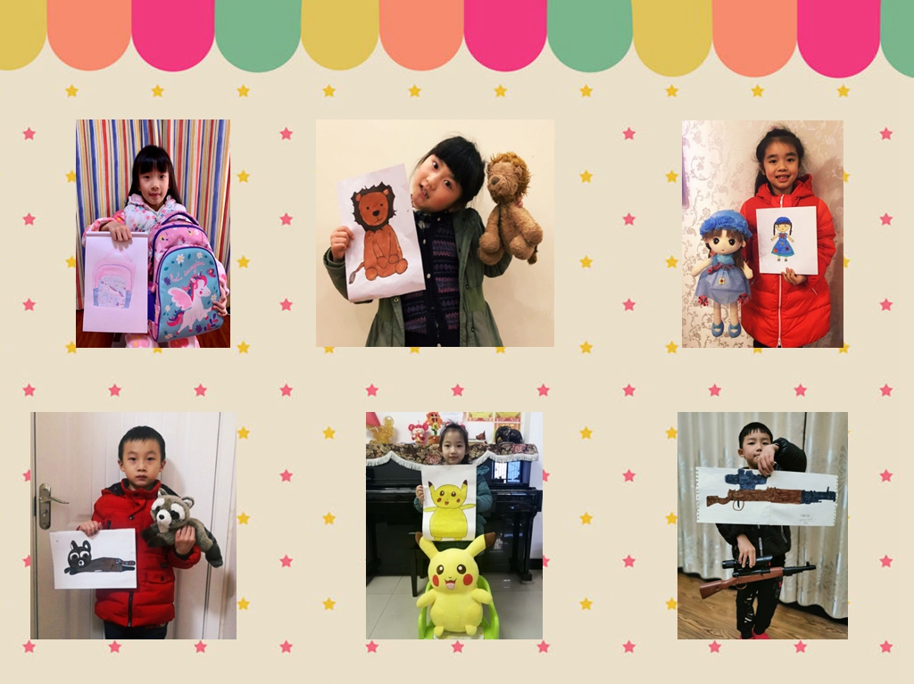 于是,何老师用文字、图片、课件等手段,通过手机、电脑与孩子和家长们沟通,进行集体授课。前三节课根据一年级小朋友的认知特点和基础点设计了三个绘画主题:1、设计一把美丽的小伞;2、写生“我最喜欢的玩具”;3、春天来了(想象一下在阳光中,小朋友最想干什么?)。