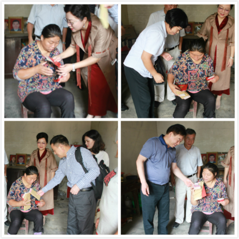 调研组一行首先来到贫困户张春香家中走访慰问。张春香自幼患小儿麻痹症导致行动不便,丧失劳动能力且生活不能自理。丈夫去世后家中独子又积极响应国家号召,参军入伍远赴新疆。她只能靠低保金和亲属邻里协助种植一亩多石榴树为生。调研组一行通过以购代捐的形式购买石榴50000元,并以两个支部名义向张春香捐款4000元。司富春向张春香及其家属叮嘱道:我们此次来慰问,是全面贯彻落实总书记关于精准扶贫的总要求,是民主党派践行社会服务的生动体现,希望你们永葆生活的信心,让孩子在部队安心训练,忠诚担当保家卫国。