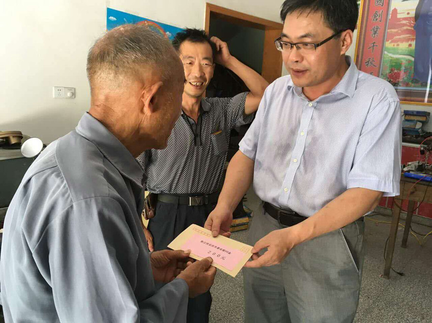 吴根华一行还向19户贫困户送去慰问金每户200元,并向田家村村委会捐赠现金4000元,以解决村部办公经费困难。