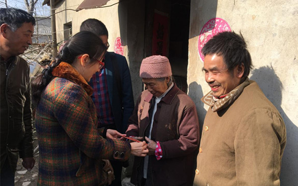 在寿县谭套村,党员们先后走访了市总支结对帮扶的3户贫困家庭,为每户分别送去了1000元慰问金。