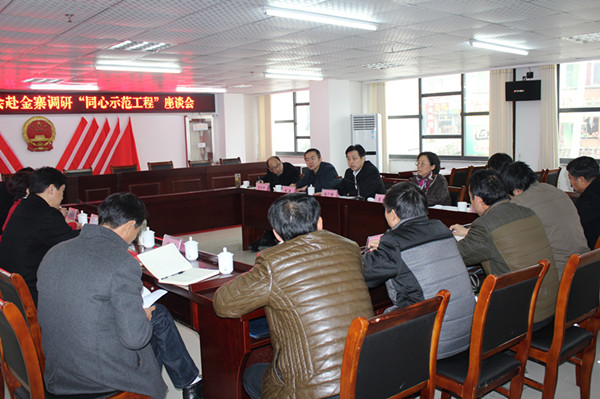 在调研座谈会上,谢广祥指出,省统一战线“同心示范工程”与脱贫攻坚工作高度契合,对服务老区发展和民生改善具有重要意义。谢广祥强调,当前,要围绕全面建成小康社会的总体目标,牢固树立以人民为中心的理念,通过精准发力,聚焦突破,加快老区经济建设步伐,让困难群众早日脱贫。要把“同心示范工程”的实施与镇村的精准扶贫工作结合起来,把在建项目抓实抓好,高标准实施、高质量完成、高效益呈现;要立足当前,着眼未来,科学规划镇村两级的长远发展,突出区域特色,做好旅游大文章。