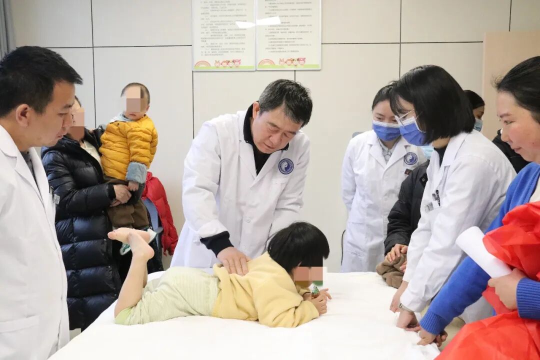 2024年2月,天津中医药大学第一附属医院儿科主任医师冯兆才为患儿进行全身检查。